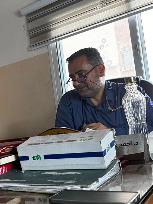 Dr. Ahmed at Nasr Hospital is the director of the pediatric department. He told us how the IDF evacuated and destroyed large portions of Nasr hospital. “We never imagined how we could rebuild. Everything was destroyed. The IDF drew things in the walls, vulgar things sometimes. When we came back in, we rebuilt portions of the hospital and covered up these ugly things on the wall… and just kept going. God made a way for us.” He says this with bullet holes behind him in the window, and with a hospital infrastructure which just hangs on by a thread. The most vulnerable patient populations here have b been neglected the most by the world.