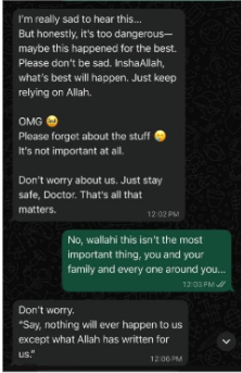 • After getting back to Aqsa and settling in, I had a chance to reunite with some of my ICU nurse friends. One of them I asked: “How are you doing, my sister?” With the biggest smile on her face: “Alhamdulilah, still breathing… Alhamdulilah.”